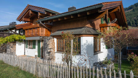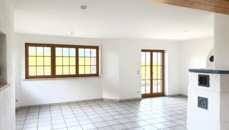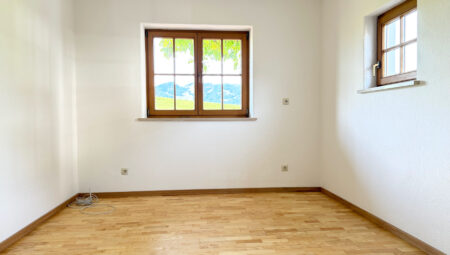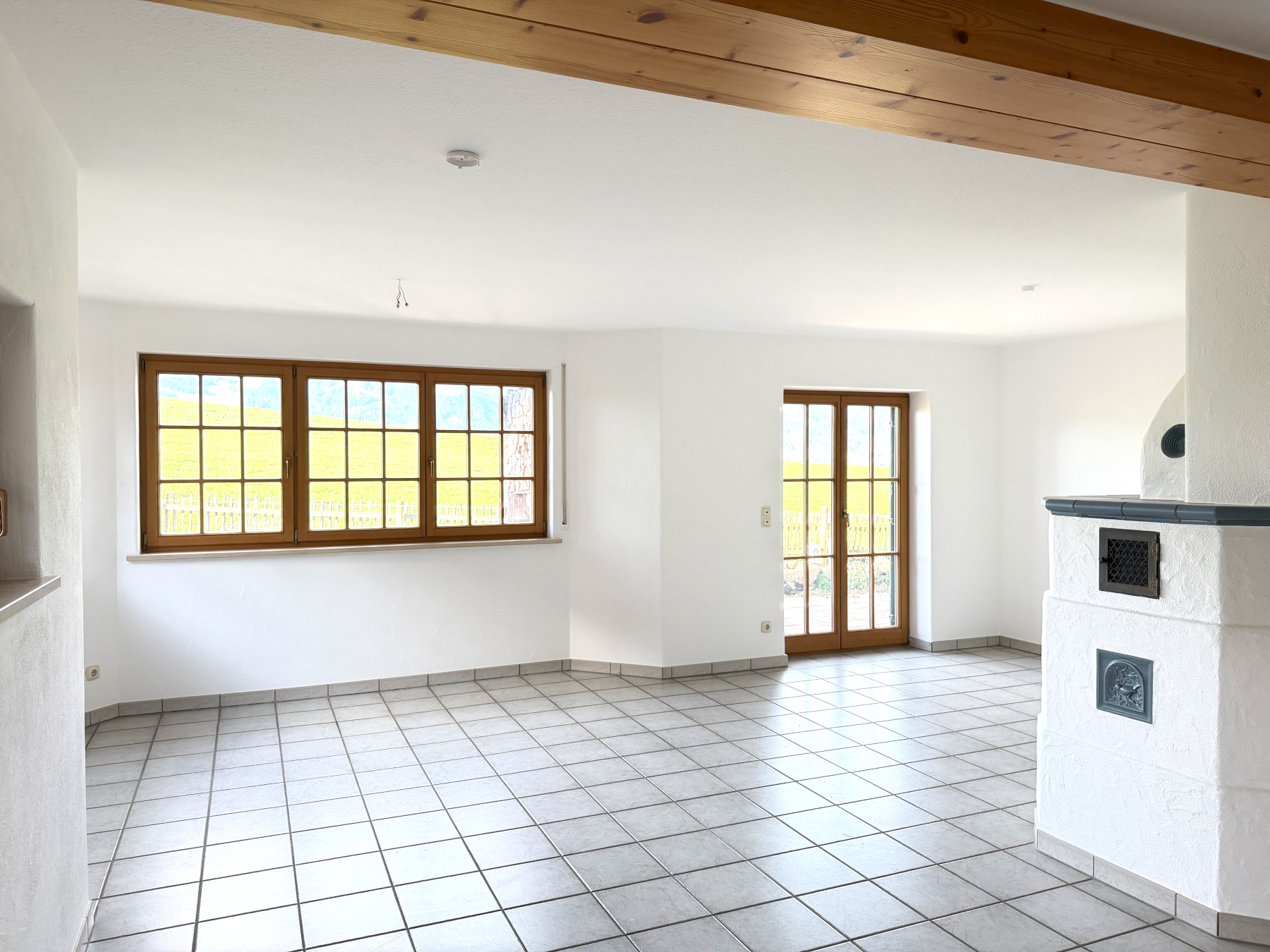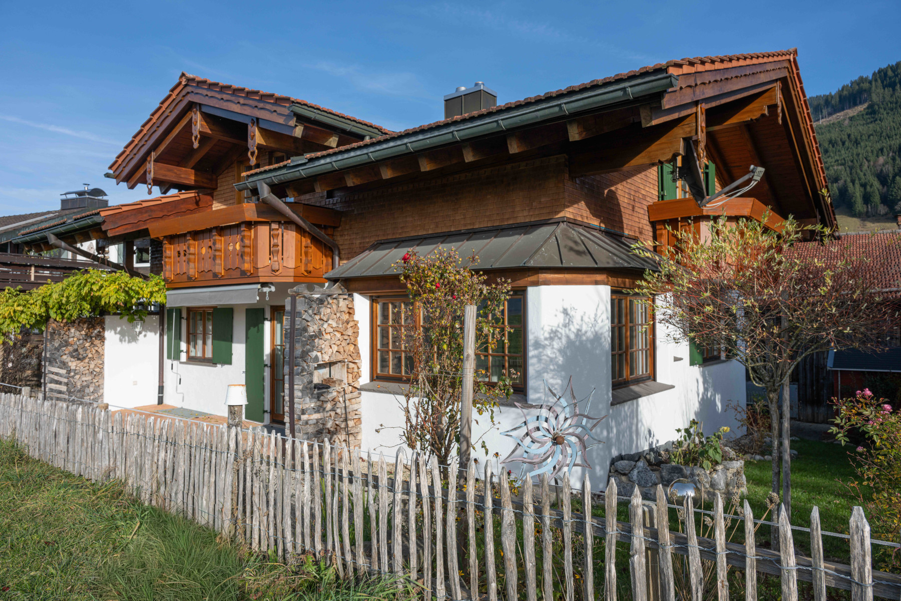 Dieses schöne und hochwertig gebaute Haus liegt im gemütlichen Dorf Schöllang, einem Ortsteil von Oberstdorf. Über den Eingangsbereich mit Windfang gelangt man in die Diele. Linker Hand ist die großzügige Wohn-Essküche. Durch die vielen Fensterfronten mit Süd-Westausrichtung ist es schön hell. Die hochwertige Einbauküche kann übernommen werden. Ein Kachelofen rundet die Gemütlichkeit ab. Von hier aus begeht man die Westterrasse, von der aus man einen schönen und unverbaubaren Blick ins Grüne und die Berge hat. Im Erdgeschoss befinden sich ein weiteres Zimmer sowie ein kleines Duschbad und separates WC. Dieser Bereich eignet sich perfekt für Kinder, Gäste oder als Büro.