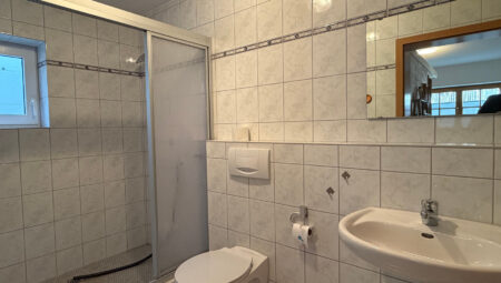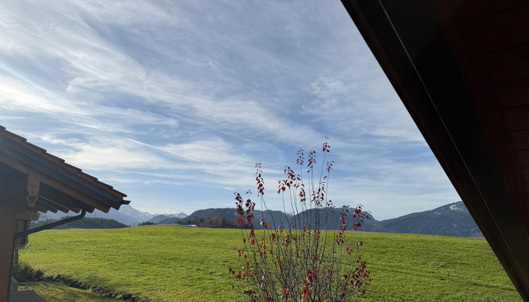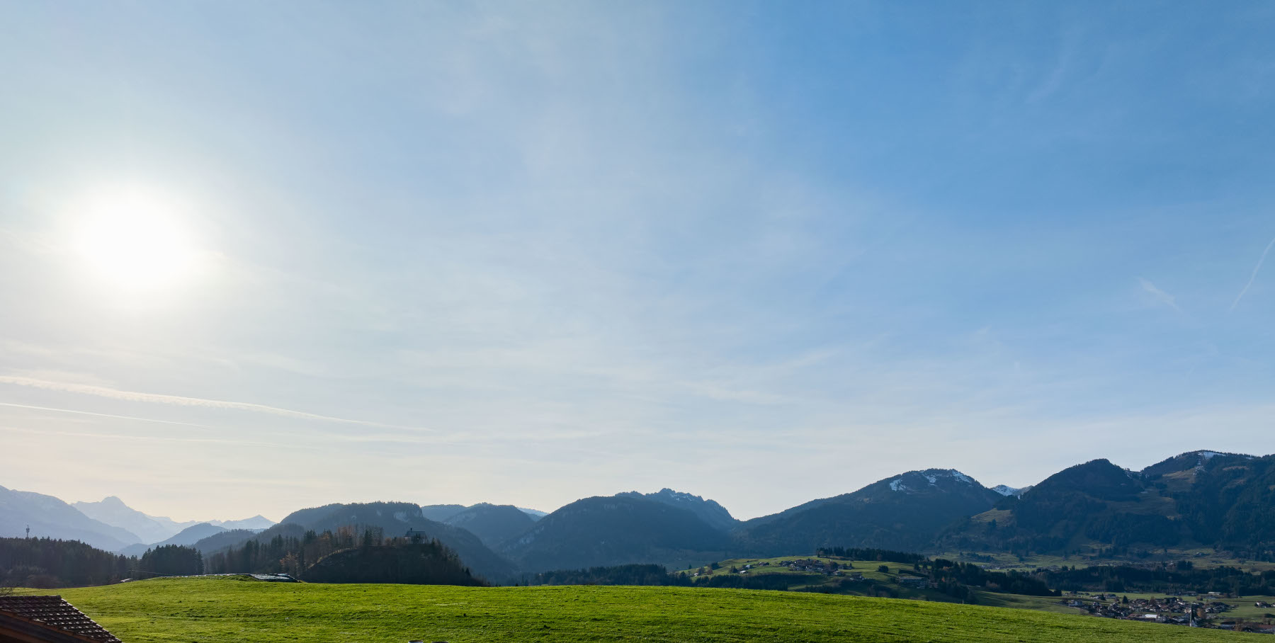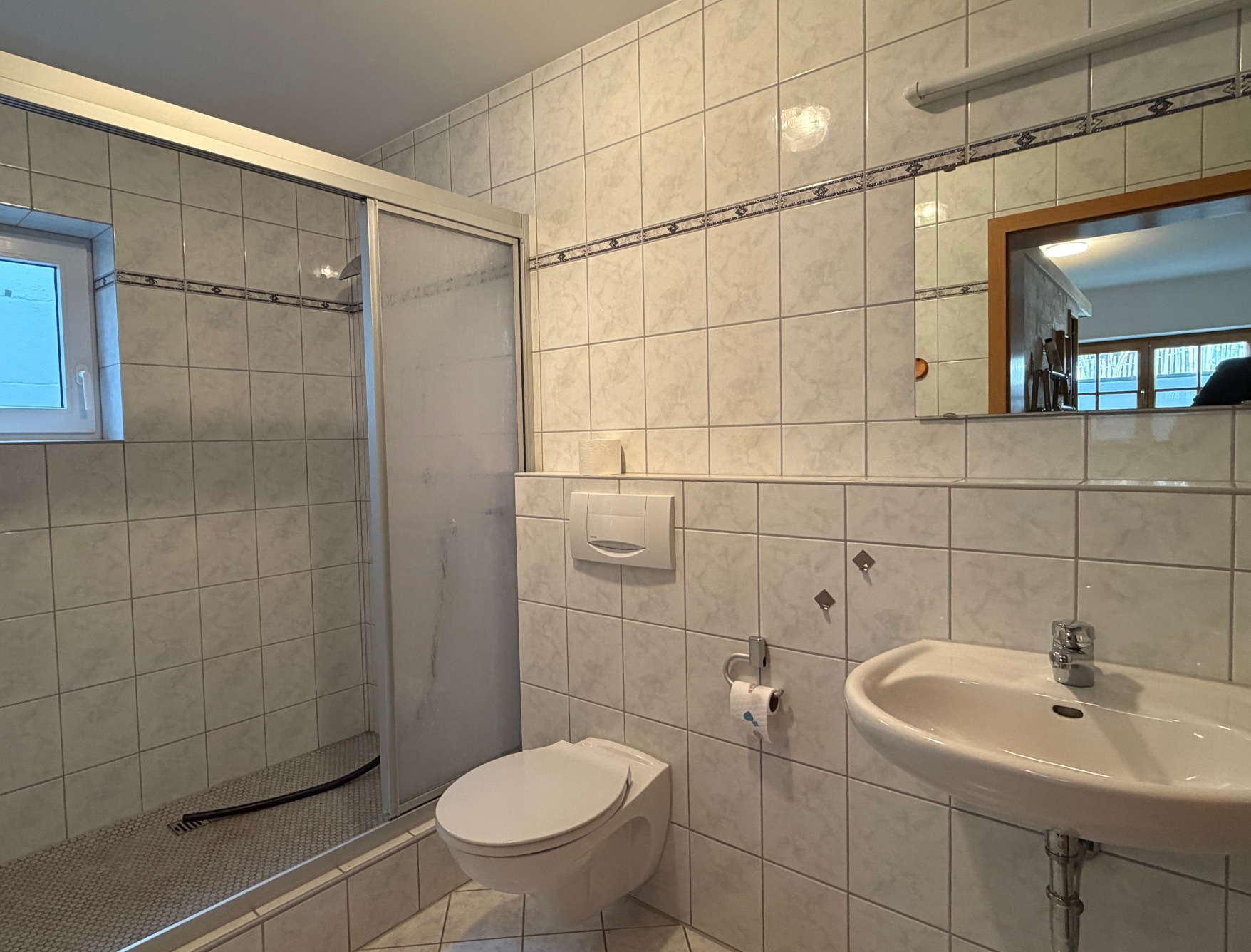 Dieses schöne und hochwertig gebaute Haus liegt im gemütlichen Dorf Schöllang, einem Ortsteil von Oberstdorf. Über den Eingangsbereich mit Windfang gelangt man in die Diele. Linker Hand ist die großzügige Wohn-Essküche. Durch die vielen Fensterfronten mit Süd-Westausrichtung ist es schön hell. Die hochwertige Einbauküche kann übernommen werden. Ein Kachelofen rundet die Gemütlichkeit ab. Von hier aus begeht man die Westterrasse, von der aus man einen schönen und unverbaubaren Blick ins Grüne und die Berge hat. Im Erdgeschoss befinden sich ein weiteres Zimmer sowie ein kleines Duschbad und separates WC. Dieser Bereich eignet sich perfekt für Kinder, Gäste oder als Büro.