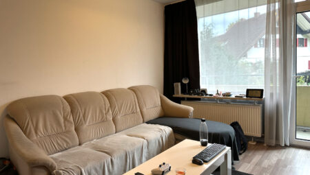 Diese Wohnung befindet sich in einem gepflegten Hochhaus in zentrumsnähe von Sonthofen. Sie liegt im Hochparterre, der Balkon ist nach Osten gerichtet. Über den EIngangsbereich gelangt man in das Badezimmer und den Wohn-/Schlafbereich. Die Küche ist vom Wohnraum separiert und verfügt über ein Fenster. Sie ist mit einer funktionellen Küchenzeile ausgestattet. Durch das großzügige Fensterelement im Wohnbereich ist der Raum schön hell. Es wurde vor 2 Jahren erneuert. Das Badezimmer ist gepflegt und mit einer Badewanne ausgestattet.